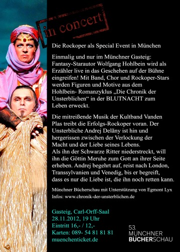 BLUTNACHT ROCKOPER SPECIAL EVENT - Mittwoch 28.11.2012 Mit Wolfgang Hohlbein und VANDEN PLAS - Live!!! | ||